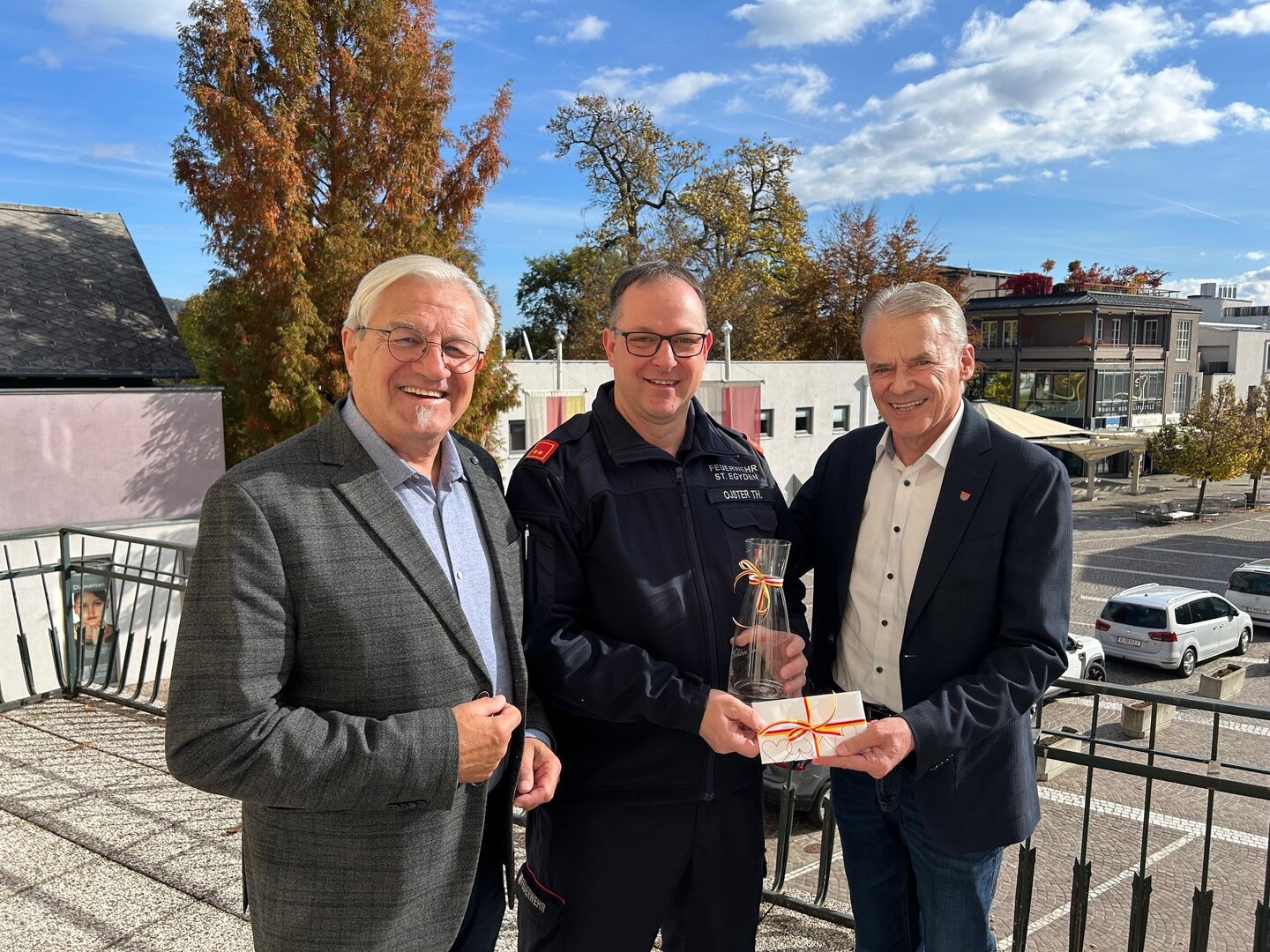Auch die Marktgemeinde Velden ließ es sich nicht nehmen, persönlich zu gratulieren: Bürgermeister Ferdinand Vouk und Gemeinderat Wolfgang Wakonig überbrachten die besten Wünsche und bedankten sich herzlich für das langjährige Engagement von Thomas Ojster im Dienste der Allgemeinheit.