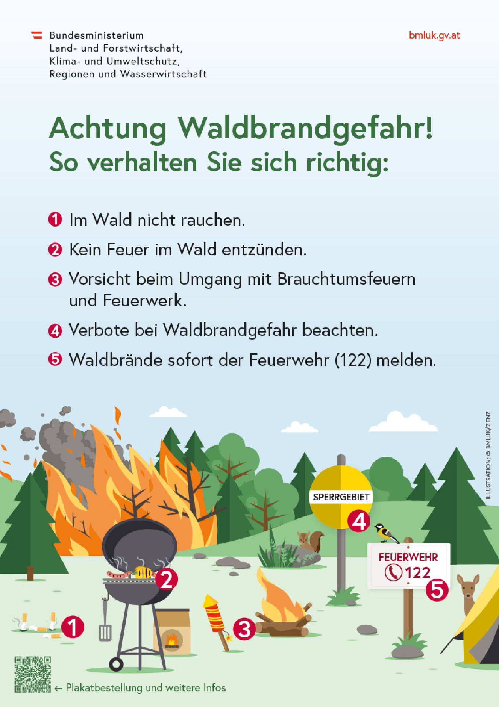 - Waldbrände sofort der Feuerwehr melden!